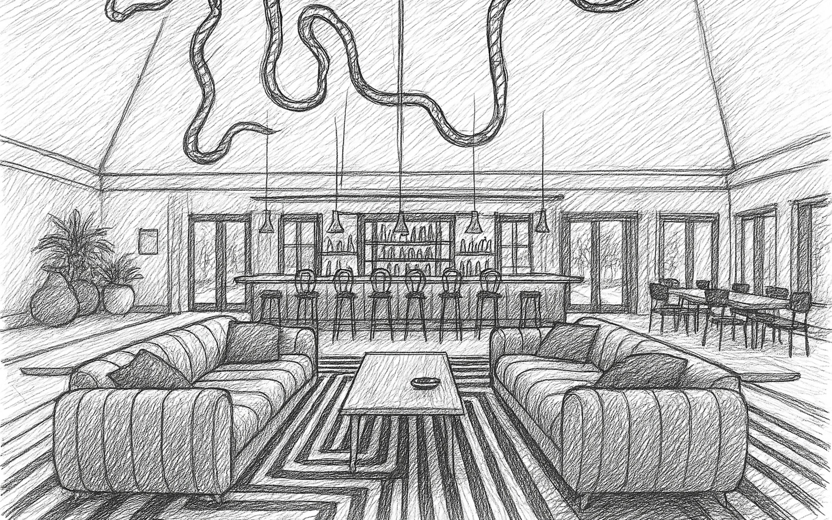 For the same beloved clients, the next chapter of our Bespoke Estate project reimagines an airy, open indoor atrium as a gathering space for entertaining, connection, and philanthropic events.